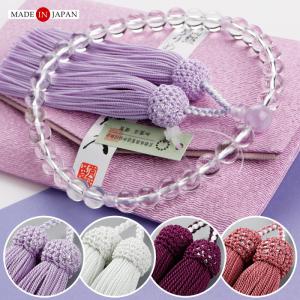 ≪特別価格≫数珠 女性用 約8ミリ 本水晶 藤雲石 正絹房 数珠袋付き おしゃれ