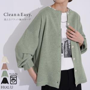 カーディガン ニット 洗える レディース トップス セーター カーデ ニットカーディガン ジャスト丈 長袖 羽織 クルーネック リブ ウォッシャブル イージーケア