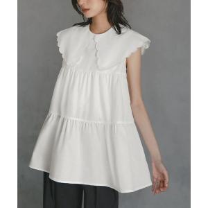 ブラウス シャツ スカラップビックカラーティアードチュニック丈ブラウス レディース