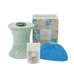 よもぎ蒸しチェアー スターターキット マント:ブルー 自宅 椅子 セット 家庭用 国産よもぎ 薬草 温活 冷え性 座浴器 丸型 格安 フェムケア はじめてセット