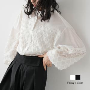 シャツ ブラウス フリンジ シアー 透け感 ぽわん袖 【lstpss24-892】【即納:1-5営業日】【送料無料】ユ込2
