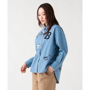 ブラウス シャツ 刺繍×プリント ロゴ ブロードシャツ レディース