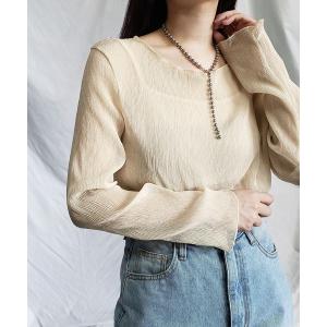 ブラウス シャツ 「キャミソール付き」シアー楊柳プリーツメロートップス レディース