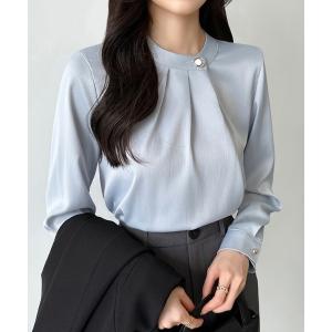 ブラウス シャツ リングボタンディティールタックブラウス きれいめ タックブラウス 長袖 ブラウス フォーマル オケージョン オフィスカジュアル