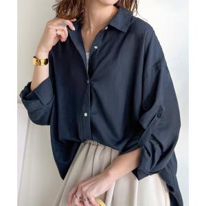ブラウス シャツ 「UVケア素材」軽やかにデイリーに使える。レーヨン麻混オーバーサイズロールアップシャツ(長袖) レディース