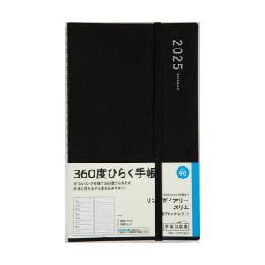 2025年版 リングダイアリースリム(月間ブロック・レフト)(黒)A5変型判ウィークリー 2025年1月始まり No.90