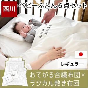 西川 ベビー布団セット 6点セット 日本製 ラジカル敷布団 うずまきキルト 洗える布団 組布団 綿100%カバー 刺繍 baby set