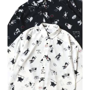 ブラウス シャツ Animal Allover Shirts/接触冷感 イージーケア オーバーサイズ アニマル 総柄 イヌ ネコ サメ ペンギン レギ