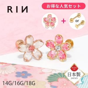 ボディピアス 軟骨 14G 16G 18G セット さくら 和風 桜 ストレートバーベル ヘリックス ステンレス 片耳用 レディース