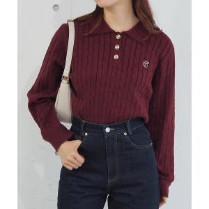 ニット セーター 「選べる2デザイン」ケーブルニットポロプルオーバー レディース