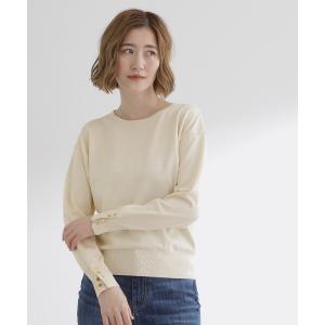 ニット セーター ON/OFF毎日使える!袖口ボタンドロップショルダーニット レディース