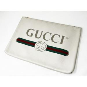 グッチ クラッチバッグ セカンドバッグ ポーチ 500984 ポートフォリオ ロゴプリント レザー ホワイト GUCCI メンズ