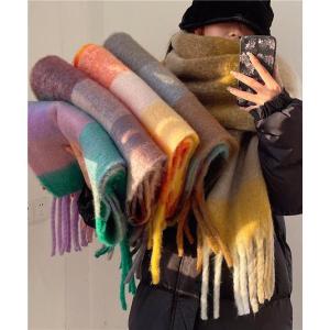 マフラー ストール ふわふわボリューム チェック柄フリンジマフラー レディース メンズ