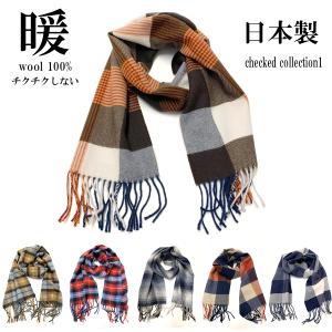 マフラー 日本製 ウール100% チェック メンズ レディース ビジネス カジュアル 冬 防寒 メール便送料無料