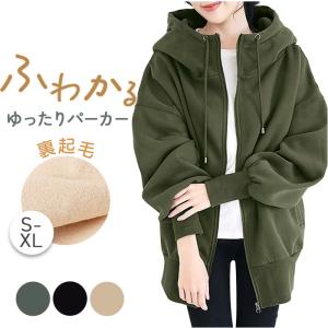パーカー レディース 冬 通販 ジップアップパーカー ジップパーカー 長袖 厚手 羽織り トップス 無地 ゆったり 秋 アウター 可愛い おしゃれ かわいい