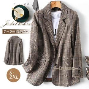 テーラードジャケット レディース チェック柄 スーツ ジャケット 秋 長袖 アウター 着痩せ ビジネス 事務服 制服 事務所 フォーマル