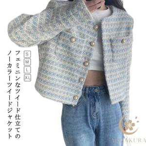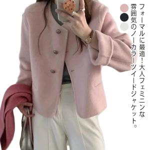 ジャケット レディース ツイード コート 羽織り アウター ノーカラー きれいめ ツイードジャケット ノーカラージャケット