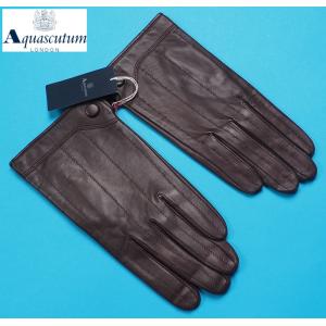 新品正規 Aquascutum アクアスキュータム 羊革レザー ステッチ装飾 手袋/グローブ 手囲い25cm(L)濃茶 AQ38053