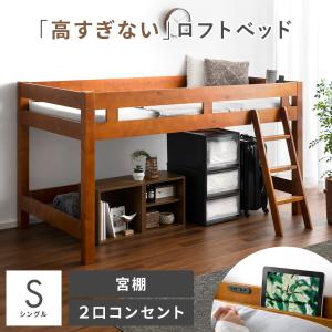 ベッド ロフトベッド シングル ベッドフレーム シングルベッド おしゃれ 宮棚付き 2口コンセント付き 木製 天然木 ロフトベット ベットフレーム