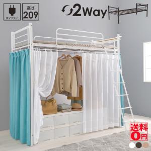 ロフトベッド ハイタイプ シングル ブラック 宮付き おしゃれ ベッド 黒 高さ調節 2口コンセント 新生活 一人暮らし メーカー直送