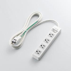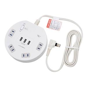 ELPA エルパ 丸形 電源タップ 集中スイッチ AC 4個口 USB-A×3 コード長 2m 雷ガード WLS-LS402RUSB W(2569610)
