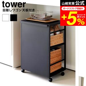 tower 山崎実業 目隠しワゴン タワー 天板付き 公式 2段 8466 8467 ホワイト ブラック 送料無料 / キャスターワゴン キッチンワゴン