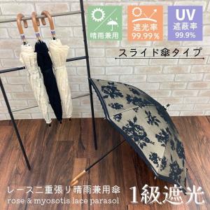 レース 二重張り 晴雨兼用傘 日傘 スライド傘 45cm レディース 花柄 バラ 一級遮光 遮光 uvカット 遮熱効果 華やか パラソル 雨傘
