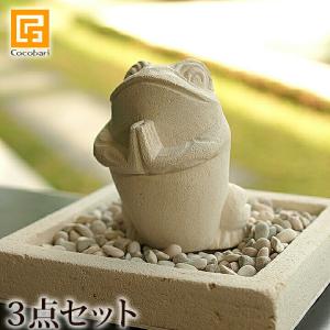 お祈りカエルと四角のお庭(手彫り)(ストーン付き) 置物 オブジェ 石 玄関 縁起物 おしゃれ かわいい グッズ 小物 バリ風 バリ雑貨 アジアン雑貨
