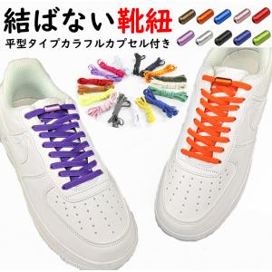平型タイプ同色カプセル付き結ばない靴紐 結ばない靴ひも むすばないシューレース ほどけない靴紐 カプセルタイプ くつひも 伸びる靴紐