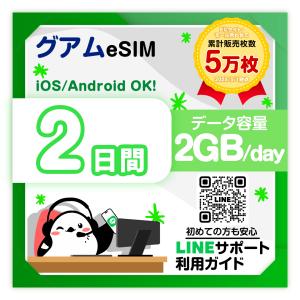 グアムeSIM:使用日数:2日間/データ容量:2GB(day)/簡単設定/有効期限90日/最短即日発行/パスポート番号不要/データ通信専用