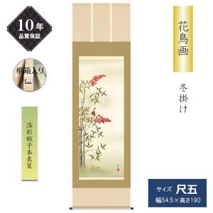 掛軸 掛け軸 花鳥画 四季花鳥揃 四季奏歓 冬 単品 南天福寿 洛彩緞子本表装 尺五 高見蘭石 桐箱 h06-snk-kz5a6-40d