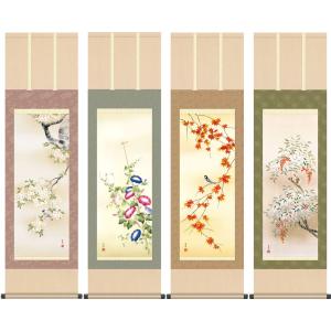 掛軸 (掛け軸) 年中掛け 四季競艶 お得な4本セット 北山歩生 尺五立 約横54.5×縦190cm g4132 年中掛 年中掛け 花鳥 四季 四季揃 お祝い 御祝