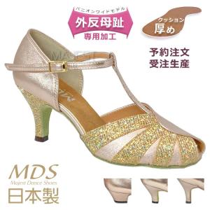 【受注生産】【予約注文】【MDS新作】社交ダンスシューズ 外反母趾用 レディース 兼用シューズ 日本製 MDS 女性【送料無料】(YJ-K3-63-101-G) 幅広 ワイド