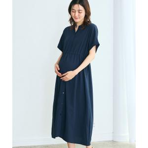 ワンピース 麻調合繊スキッパ― ドロストシャツワンピース(マタニティ/授乳服)授乳口付き 授乳楽々 妊婦服 産前・産後対応