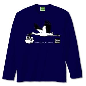 コウノトリのデリバリー Tシャツ 長袖 メンズ 野鳥 デリバリー 宅配 配達 出前 イラスト おもしろ バカ かわいい パロディ【キテレツTシャツ悪意1000%】