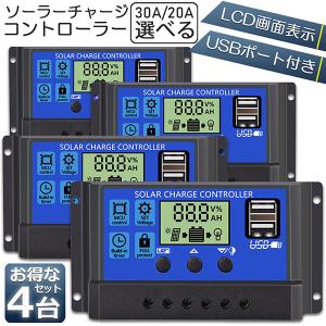 爆買 ソーラーチャージ コントローラー 4台セット 20A 30A 12V 24V 鉛蓄電池車バッテリー充電コントローラー USBポート 付き LCD