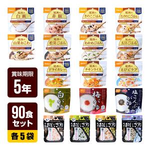 非常食 90食セット [アルファ米 14種類×各5袋+携帯おにぎり 4種×各5袋] 尾西食品 非常食セット 防災食 保存食 防災セット 5年保存 送料無料
