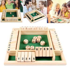 1-4プレーヤーシャットボックスサイコロゲーム.クラシック4両面木製ゲーム子供のため8サイコロ大人スマートゲーム屋内屋内.グリーン