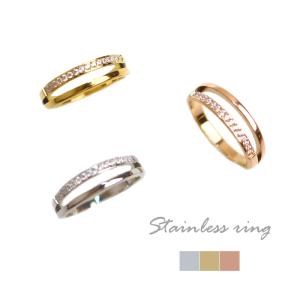 リング 指輪 5mm CZダイヤ ステンレスリング レイヤード風 2連 重ね ニッケルフリー キュービックジルコニア 金属アレルギー 華奢 アクセサリー レディース