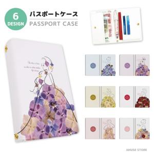 パスポートケース おしゃれ かわいい 2つ折り カード 紛失防止 ストラップホール付 高級感 軽量 プリンセス 押し花 花柄