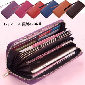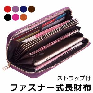 財布 レディース 長財布 牛革 ガバっと開く ラウンドファスナー 使いやすい たっぷり収納 取り出しやすい おしゃれ 大容量 軽量 ストラップ付