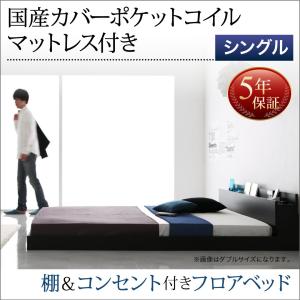 シングルベッド ベッド シングル マットレス付き シングルベッド コンセント付き ローベッド ベッド 国産カバーポケットコイル
