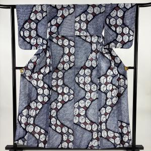 浴衣 身丈158.5cm 裄丈64cm M 絞り浴衣 亀甲 紺色 綿 名品 中古