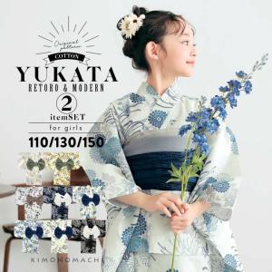 浴衣 子供 女の子 子供浴衣セット(浴衣+帯) 浴衣2点セット「糸菊に菊花紋・向日葵・雪輪に花の丸・秋草に虫かご」110cm/130cm/150cm 綿浴衣 (メール便不可)