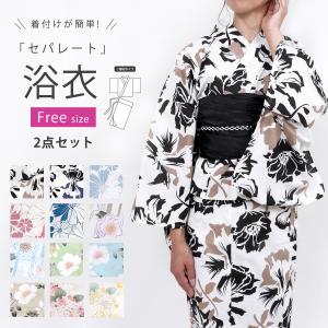 浴衣 セパレート レディース 帯 セット 二部式 女性 浴衣 白 ピンク ベージュ フリーサイズ 夏祭り 花火大会 yukata レトロ かわいい おしゃれ ly305