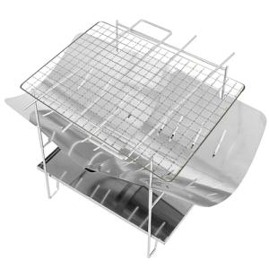 ステンレスグリル アウトドア グリル 焚火台 焚き火スタンド 幅28cm 直火 調理台 組立簡単 テーブル キャンプ 折りたたみ 焚き火調理 1年保証 送料無料