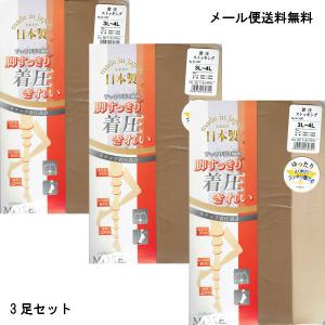 (3足セット) 大きいサイズ ストッキング 着圧 (足首12hpa)(3L-4L)(つま先補強・マチ付き)(日本製) MORE