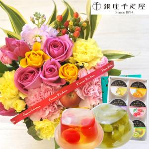 花とスイーツのセット バラアレンジメントと【銀座千疋屋】ゼリー6個入りセット プレゼント 誕生日 記念日 お祝い花 即日発送 あすつく FKAA