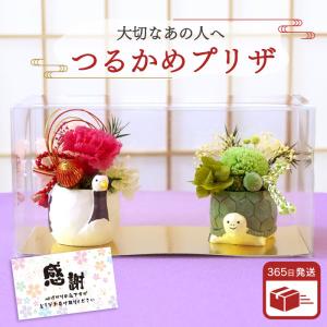 古希祝い 花プレゼント ギフト 縁起物 プリザ 鶴亀 プリザーブドフラワー 還暦 女性 長寿 傘寿 米寿 喜寿のお祝い 祖母 誕生日 60代 70代 80代