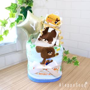 出産祝い くまのがっこう ジャッキーの小さなおむつケーキ 送料無料 即日発送 名入れタオル B60